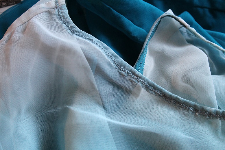 I often work with remnants and old clothes that I take apart, so it is not unusual for me to run out of a given fabric and finishing the garment by using multiple textiles. Embroidery stitches are very handy for top stiching or decorating joined pieces.