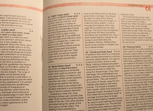 For do-it-yourself embellishments such as appliqués, top stitching for seams and between joined pieces. The Complete Stitch Encyclopedia, a reference book and self-instruction manual in one. My copy dates from 1987.