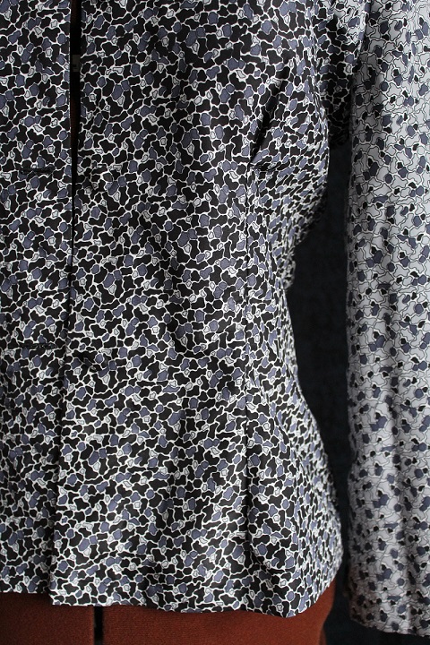 Two-tone greys 40s style; back yoke lower & deeper darts